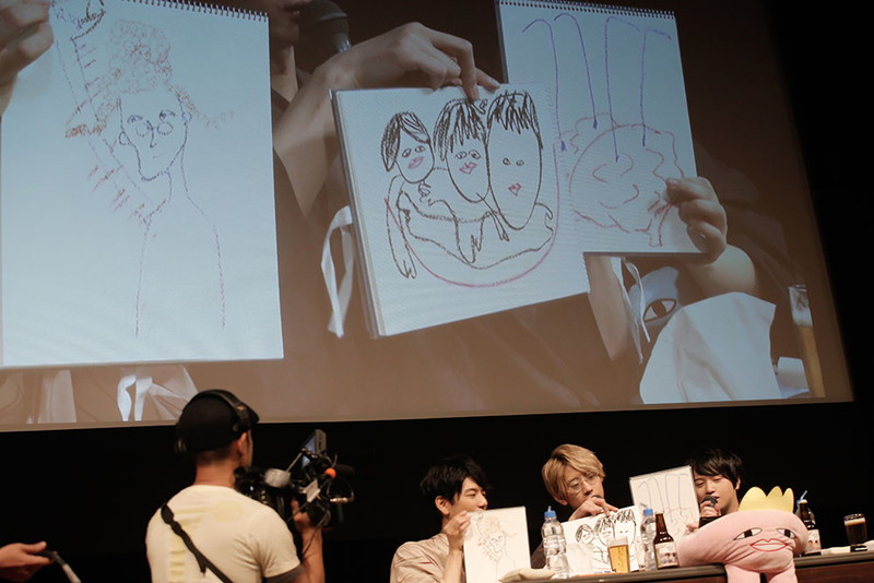 続く江口さんは“銀座で食べた天ぷら”を題材に“3人が天ぷらになる姿”をイラスト化。独特な世界観にまたもや会場から悲鳴が上がるなか、疑問を呈したのは西山さん。なんでも西山さんのイラストだけサイズが大きい(とくに顔)ことに疑問を感じたようで、「(場合によっては)怒りますよ?」と詰め寄る西山さんの姿に、江口さんは再び涙が出るほどツボっていた。