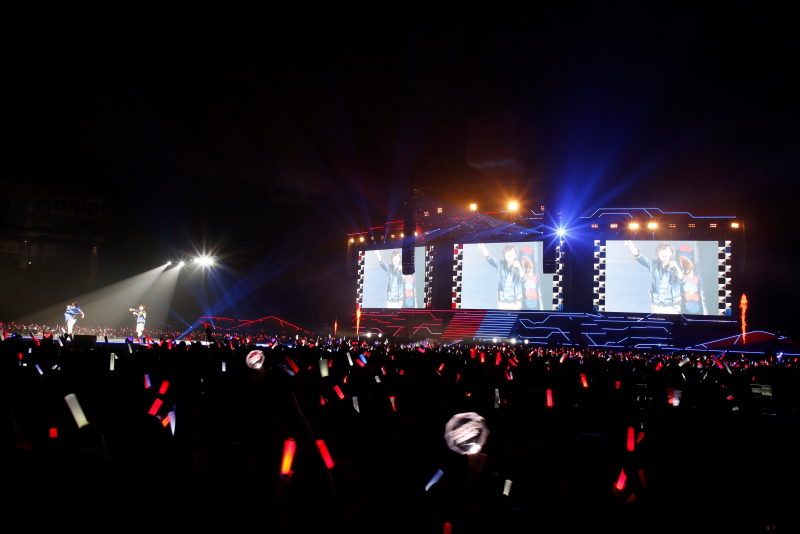 寺島さん、益山さん、小松さんが「ラストスパートです。まだまだ盛り上がれますか!」と会場をあおると、次の曲は仲村さんソロかと思いきや、なんとスペシャルゲストに西川貴教さん登場!DRAMATIC STARSの『DRAMATIC NONFICTION』を仲村さんと歌い上げ、オレンジ色に輝く会場は今日だけの特別な演出に、歓声が鳴り止まりませんでした。