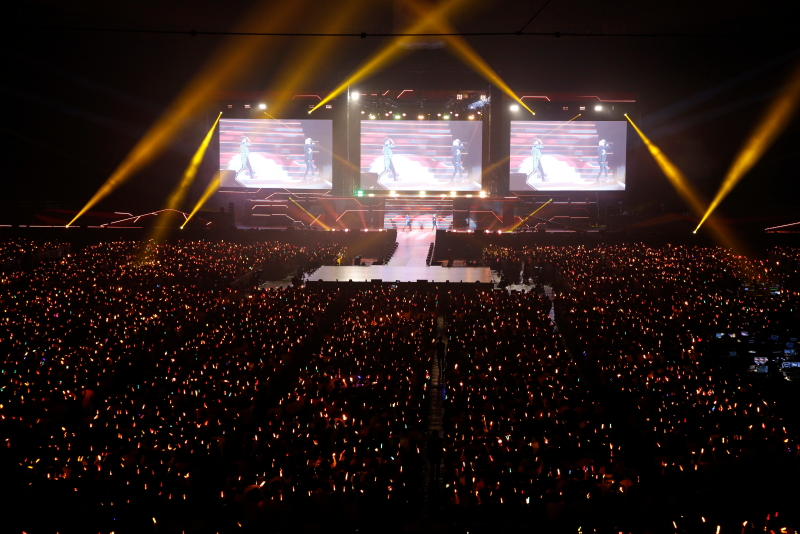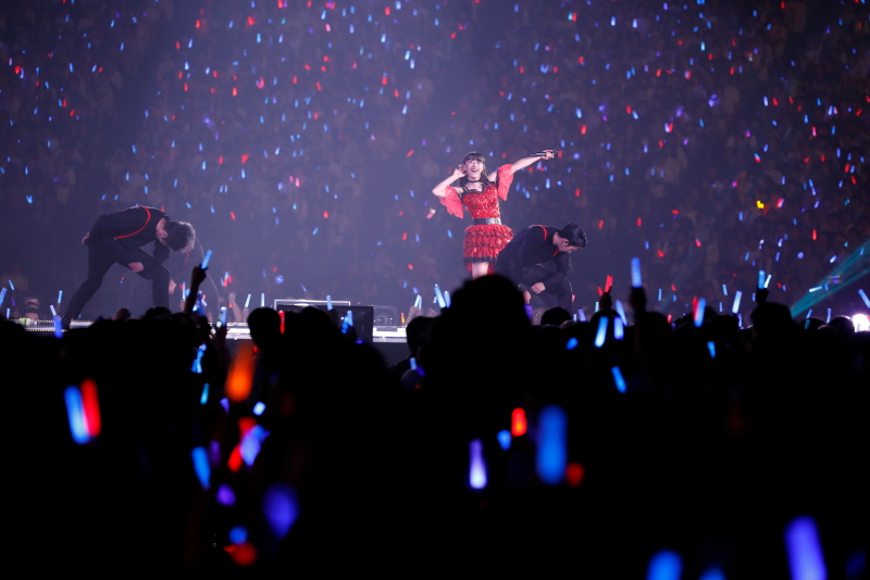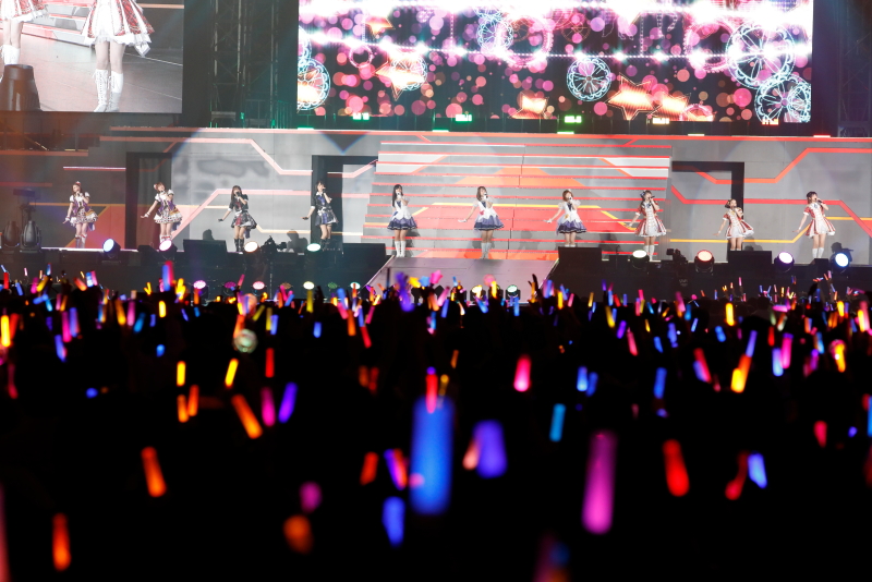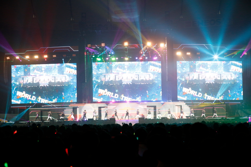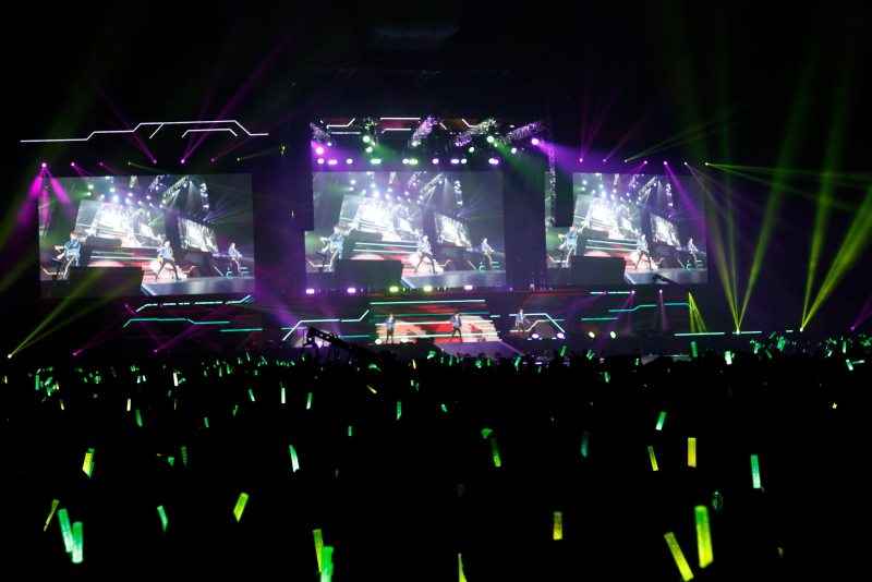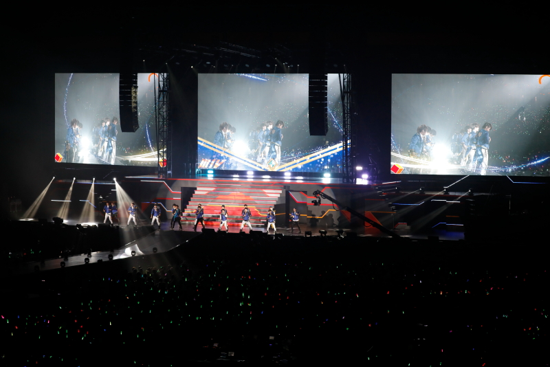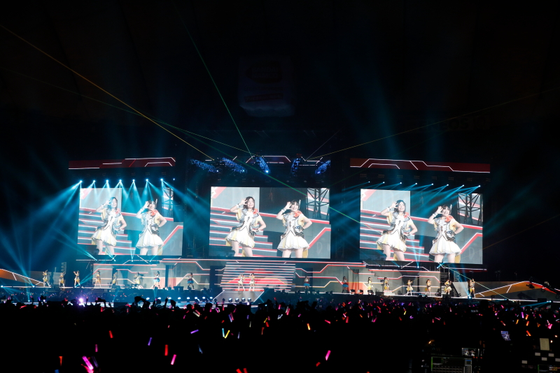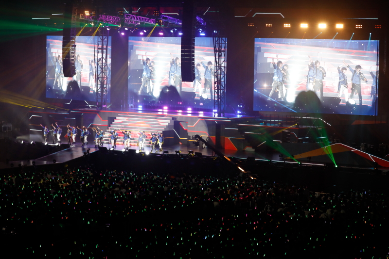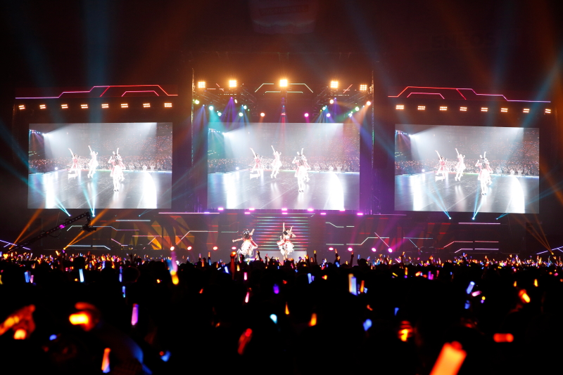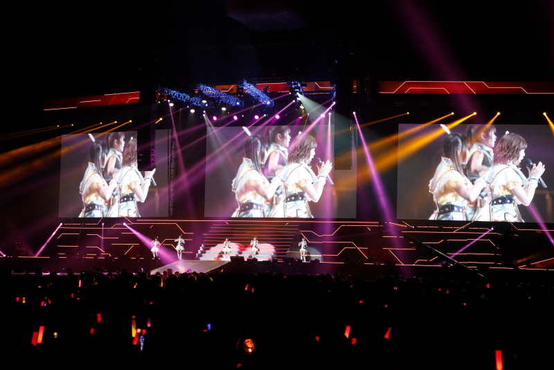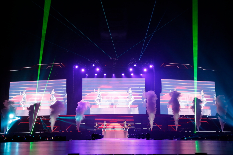 『Baile Apasionado』では闘牛士のような赤い布を用いた振り付けと、赤い薔薇を映し出したスクリーンに彩られ、会場も赤一色。間奏では大人びた色気のあるソロダンスも披露するなど、それぞれの楽曲に合わせた演出で盛り上げました。
