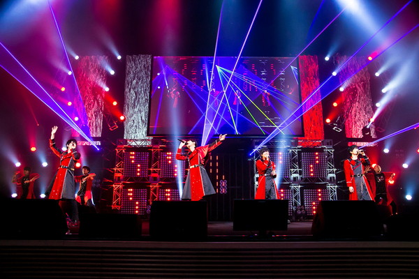 そんな賑やかな雰囲気から一転。ダンサーによる本格ダンスで場面転換を終えると、バックスクリーンに映し出されたのは、夜景とキャラクターたちの姿。一瞬にしてセクシーな雰囲気に包まれる中、続く7曲目は「COCORO」。しっとりと、時には「会いたい 会えない」と繰り返す情熱的なフレーズを力強く感情込めて歌うなど、一気にSolidSの本来の大人なムードに誘いました。