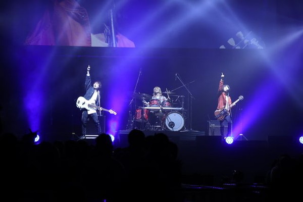 そしてスペシャルゲストとして、主題歌アーティスト・BURNOUT SYNDROMESが登壇。第1クールのオープニングテーマ「Good Morning World!」を披露。迫力のある歌声に、会場からも大きな手拍子があがった。