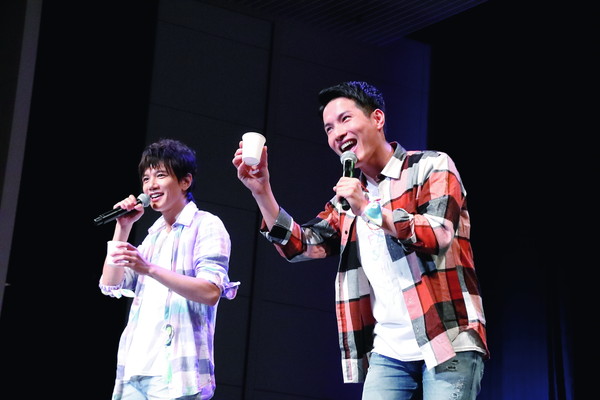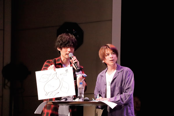 大きな拍手に迎えられながら増田俊樹さん、高橋直純さん、KENNさん、鈴木裕斗さんがステージに登場し、まずはオープニングトークからスタート。衣装の話題になると、KENNさんが自身の靴に対して「『Big Bang Fes』のときの稽古靴を、キャラカラーに自分でペイントした」と告げて会場全体がビックリ。鈴木さんは自身が演じる野村アールのイメージカラーであるオレンジ色をどのように取り入れたらよいかを高橋さんに相談したことや、増田さんが下着の色も赤色にしたことを語る場面もありました。