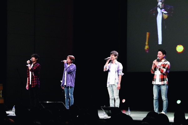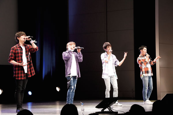 4人が改めて今回のイベントを振り返っての感想を語り、イベントは閉幕…とはならず、なんと「日頃の感謝の気持ちを込めて」と、本イベント限定の朗読劇とライブのプレゼントが! 朗読劇ではフリートークふうの物語が展開され、一同が役を演じながら「今日はみんなに会えて嬉しい」など声を掛けます。さらには客席へ向かってひとりずつ投げキッスをしていくシーンもありドキドキの連続! ライブパートではバラード曲『光』をしっとりと歌い上げ、観客を魅了しました。最後は4人で声を揃えて「ありがとうございました!」でイベントを締めくくりました。