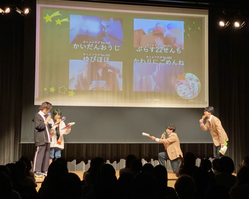 続いての「遊星高校・生徒総会報告!」と題された新情報コーナーでは、遊星高校の最新ニュースやマル秘スクープを発信する「新聞部」の発足が発表され、ますます今後の展開が楽しみに。その後、観客を巻き込んでのジングル収録が行われ、ますます会場の一体感が増していきます。この時収録されたジングルは、今後、番組の中で流れるので、どうぞお楽しみに♪