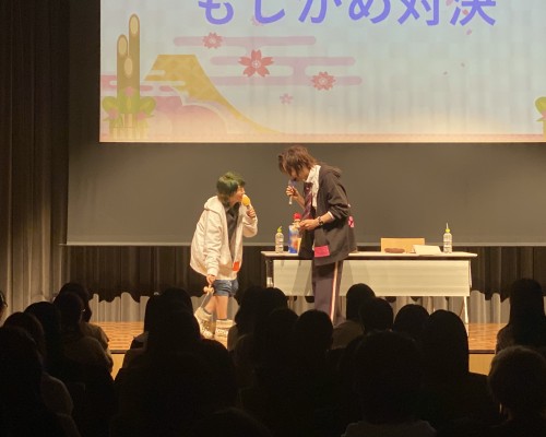 そして早くも最後となる3回戦「クイズ! 生徒総会の会場の中に10人いました」がスタート。ふたりがそれぞれ質問を考え、会場のなかで該当する人が10人に近いほうが勝ち、というもの。