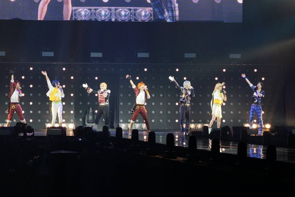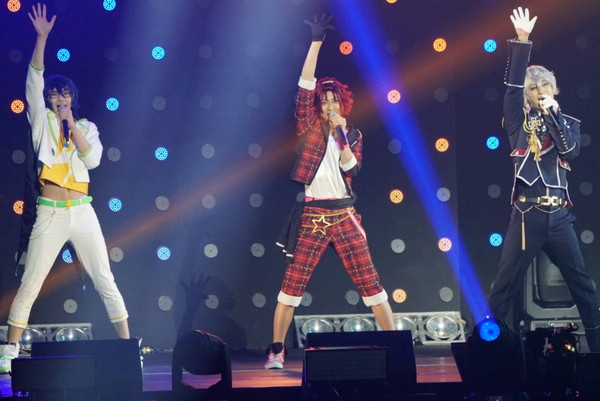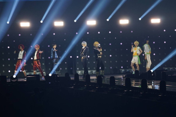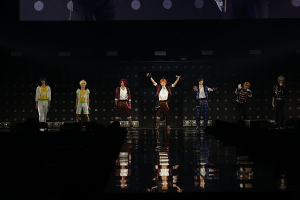 ステージには『あんステ』明星スバル役の小澤 廉さん、氷鷹北斗役の山本一慶さん、衣更真緒役の谷水 力さん、遊木真役の松村泰一郎さん、瀬名 泉役の高崎翔太さん、青葉つむぎ役の工藤大夢さん、春川 宙役の世古口凌さんが出演し「ONLY YOUR STARS!」歌唱しオープニングを華々しく飾った。