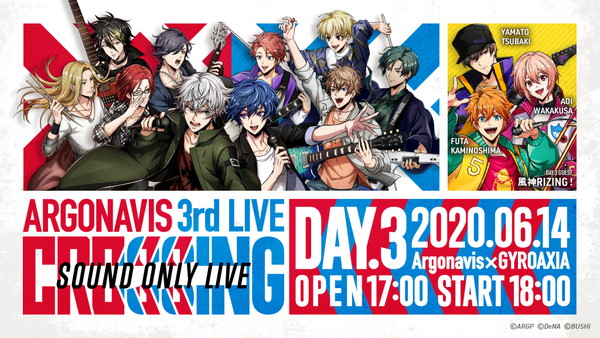 『アルゴナビス from BanG Dream!』の音声のみの体験型ライブ「ARGONAVIS 3rd LIVE CROSSING “Sound Only Live DAY3」が、6月14日に開催。この度、ゲストに「風神RIZING!」のメンバーを迎え、新たなセトリ&ボイスドラマによって構成されたライブのオフィシャルレポートが到着した。