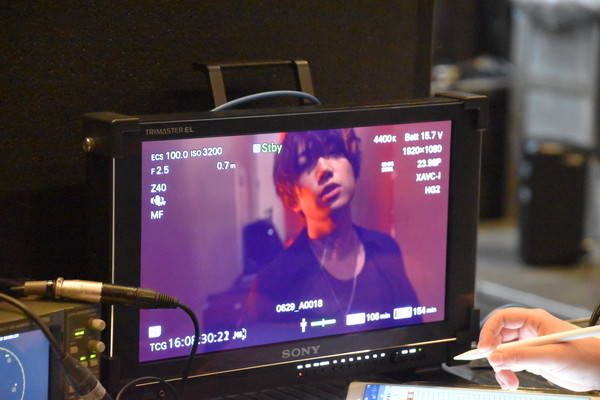 さらに、本PVで重要となってくるのが、“汗“を演出するシーンだ。したたる汗のスタンバイが整ったところで、さっそくそのシーンの撮影へ。