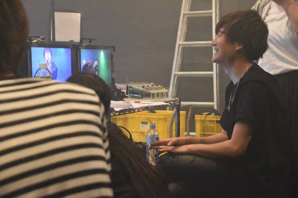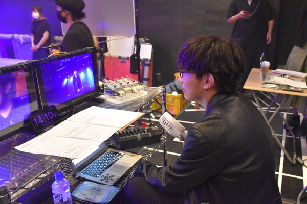 イメージカラーの赤を取り入れた衣装に着替えるやいなや、「広瀬くんの映像を見ても良いですか?」とリクエスト。「なるほど、こういう風に仕上がるんですね」「こうした方が良いですか?」と、演出と入念に世界観や動きなどをすり合わせる。