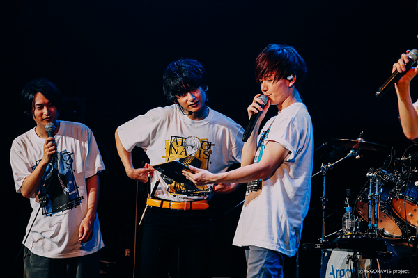 アンコールでArgonavisメンバーは再び壇上に。ここからはキャラクターとしてではなく、本人としてのステージだ。それぞれの担当キャラが印刷されたTシャツを身に着けリラックスしている。各告知をワイワイと振り返る様子からは、普段からの仲の良さが窺えた。