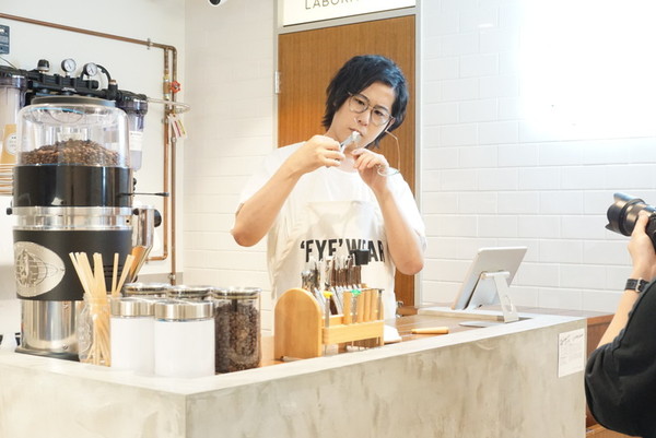 こちらのお店ではコーヒーなども飲めるカフェも併設され、それを聞いた白井さんはメガネとコーヒーという意外な組み合わせに驚きつつも興味深そうな様子でした。