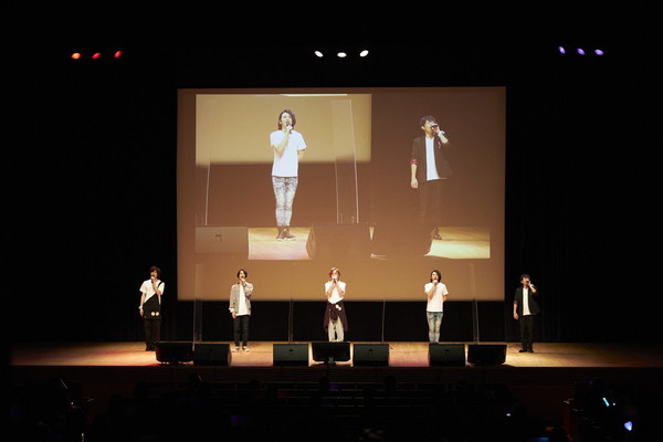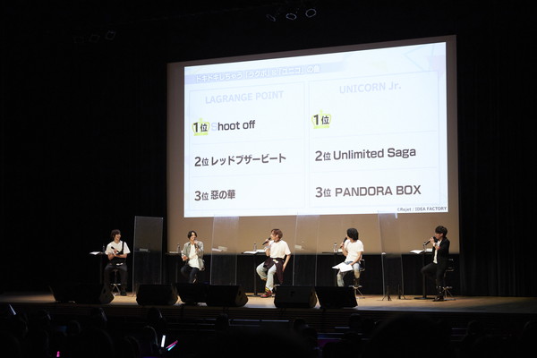 去年はMARGINAL#4のキャストが集合したピタゴラスファン感謝祭ですが、今年はLAGRANGE POINTの牧島シャイ役の豊永利行さん、緋室キラ役の大河元気さん、UNICORN Jr.の新堂ツバサ役の蒼井翔太さん、滝丸アルト役の沢城千春さん、仲真テルマ役の染谷俊之さんが登壇しました。