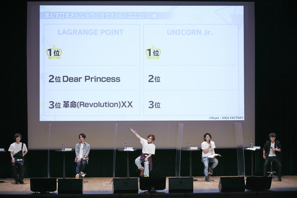 するとこの自己紹介は他の4人にも引き継がれ、トリを飾った染谷さんもはにかみながら「仲真テルマ役の、俺です」と自己紹介。ラグポとユニコのキャストが揃うのは去年11月の『LAGRANGE POINT単独ライブ「Dear Princess」』ぶりですが、仲の良さとノリの良さは健在でした!