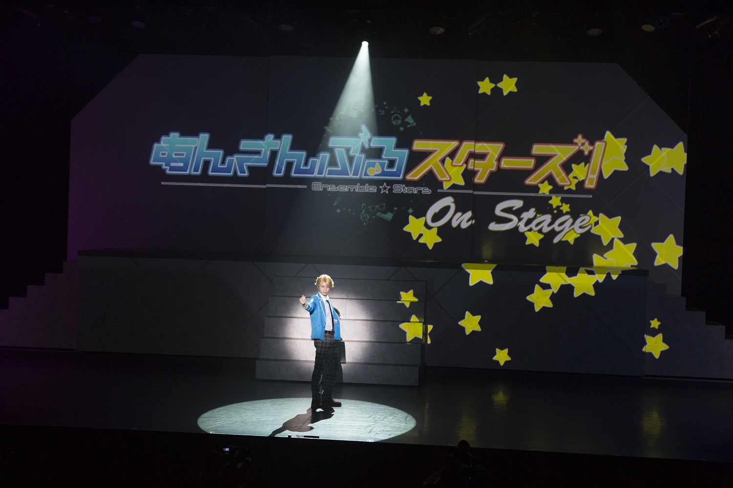 まず、ゲームでお馴染みのBGMとともに登場したのは、Knightsのメンバーである鳴上 嵐(北村 諒)と瀬名 泉(高崎翔太)。始めに夢ノ咲学院の説明もしっかりとしてくれるので、原作を知らなくてもバッチリ楽しめる演出なのが魅力的だ。その後のオープニングでは、Trickstarが披露する『Rebellion Star』をバックに、制服姿の全キャストが次々と登壇! 会場を早くも沸かせる。