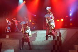 客席を使用した演出も度々見られる本作。ライブシーンはもちろんのこと、演劇パートでも客席にキャラクターが登場する。舞台上のステージだけでなく、客席を含めた会場全体がまさに夢ノ咲学院であるかのような錯覚に陥るほど、キャラクターたちが生き生きと動きまわる。