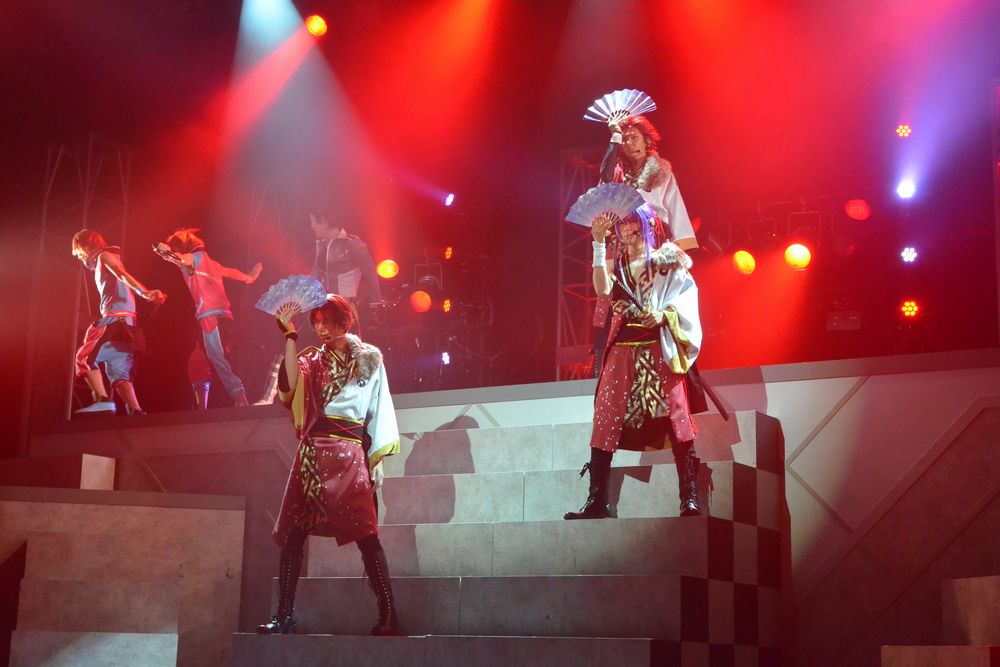 生徒会に所属する蓮巳敬人(小松準弥)率いる“紅月”は、学院No.2の強さを誇るユニット。『あんステ』でのパフォーマンスも圧倒的なもので、鬼龍紅郎(上田堪大)の力強いダンスをはじめ、踊るたびにひらめく和装や、扇子を使った振り付け、神崎颯馬(樋口裕太)の殺陣で観客を魅了。王者の風格を感じさせるものだった。