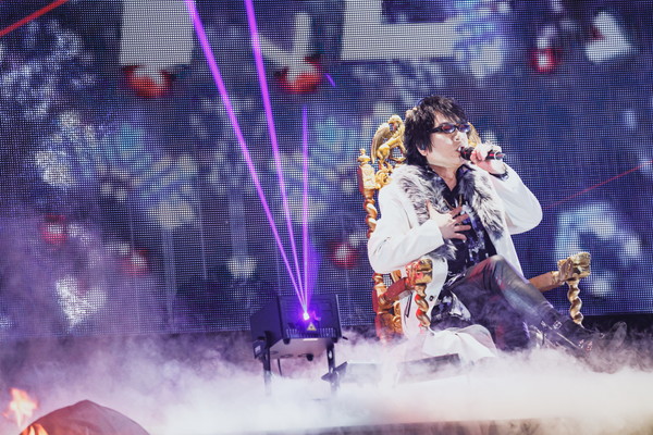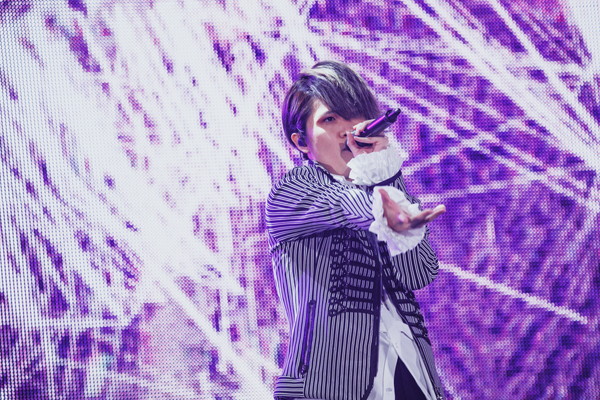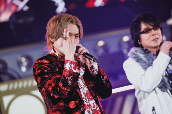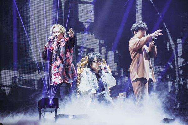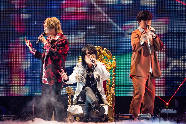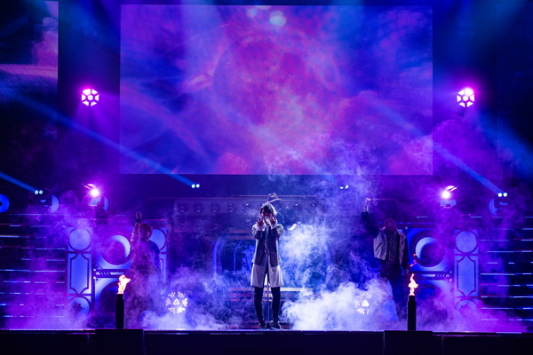 また、ライブの中盤では中王区 言の葉党、東方天乙統女役の小林ゆう、勘解由小路無花果役のたかはし智秋、碧棺合歓役の山本希望の3人がセンターステージに登場。昨年発表となった中王区の楽曲「Femme Fatale」を堂々歌唱。