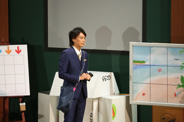 最初の謎解きで佐藤はpepperに重いものを持たせないように気遣いを見せ、pepperはダジャレで場を和ませます。さらにアドリブワードで佐藤が【おいくつですか?】と尋ねるとpepperはハタチと言いつつも実際は33歳であることを明かします。続けて佐藤は【オカネガホシイ?】と質問。pepperが「欲しい」と答えると、「お金のなる木とかあるんじゃないですか?」と昼公演をほのめかすようなことを言う佐藤。pepperの見た目が昼公演に登場した明日香と同じであることから、佐藤も昼公演の物語と繋がりがあるのでしょうか?