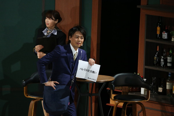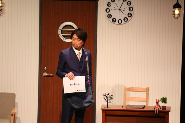 昼公演と役割は逆となっていますが、蒼井さん演じるpepperはなんと昼公演と同じ姿 ! 一方の浪川さんが演じる佐藤康治はスーツ姿でジュラルミンケースを持ったサラリーマン風の男。pepperを見てコメント欄は昼公演に登場した蒼井さんが演じた明日香と関係があるのかとざわついていました。