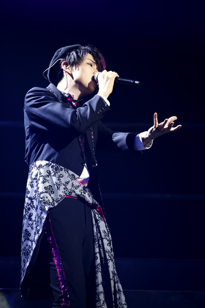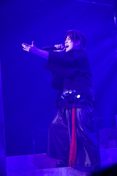 「BLACK LIVE」はヘビーな「During the demise」で開幕。 藤田さんの朗々とした歌声と齋藤さんのラップによってブラスタの世界に引き込まれます。そのままゲームでおなじみのショーレストラン「Theater Starless」の絢爛な夜を思わせる「エギーユ・クルーズ」へ。ダンサーと一緒に踊りつつ、藤田さんはセクシーに歌い上げていました。