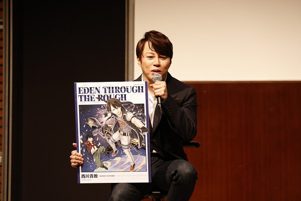 そんな西川のために、真島先生から西川とシキがコラボしたイラストのプレゼントがサプライズで到着。こちらは「Eden through the rough」の期間限定生産盤のジャケットにも使用されるとのことで、西川さんは「やったー! うちの表札、これにしたい! 嬉しい! 最高じゃないですか!」と我を忘れて大興奮。小松からは作品の世界観にあまりにマッチした西川さんのイラストに「このまま原作にも登場していただきたい!」との声も。さらに、西川自慢の“筋肉”もバッチリと描かれているようで「ちゃんと肩から二頭筋にかけてのセパレーションが出てます。僕の腹筋はシックスパックなんですけど、それが非常に明確に描かれていて…」とそのリアルぶりに本人も驚いた様子だった。