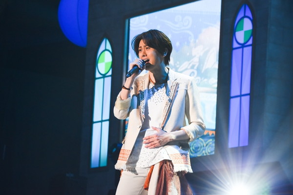 そしてライブは終盤へ。波の音とピアノの音色が響きわたると、太田基裕による「どこまでも ~How Far I‘ll Go~」(『モアナと伝説の海』より)爽やかに歌い上げます。続いて披露されたのは、圧倒的なスケールで披露され、多くの人に愛されてきた東京ディズニーシーのデイタイム・ハーバーショー レジェンド・オブ・ミシカより「フィール・ザ・ラブ」 。美しく揃った王子様衣装に身を包んだオールキャストが勢ぞろいし、幻想的でダイナミックなサウンドと歌唱で会場をひとつにしていきます。ここで全キャスト一人ずつの挨拶があり、木村は「久しぶりの夢の時間、とても楽しかったです。」と語り、島﨑は「みんなライトいっぱい振ってくれてありがとう!声は出せないけど、皆さんの気持ちが凄く届いて、元気が出ました!」と客席にお礼の言葉が贈られました。