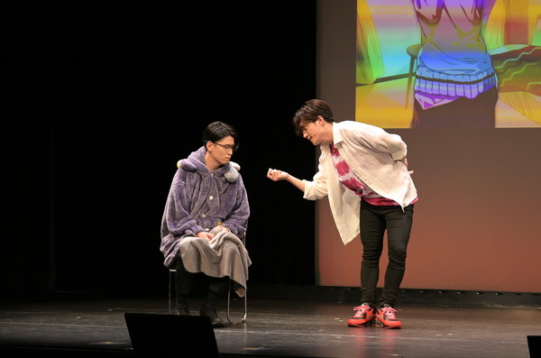 そして、続いてコント「レストラン」(昼公演)「YouTuber」(夜公演)は、なんと阿座上さんがこの日の為に書き下ろしたネタ。レストランを舞台にした、クレーマーvs先読み店員。母親がまさかのYouTuberデビューしていたという事実を知った息子の複雑な心境を見事にコントにし、観客を大いに笑わせました。