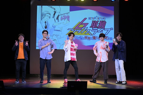5月23日(日)東京・サイエンスホールにて『GETUP! GETLIVE!』初の単独ライブとなる、6-シックス-による「この6でもない世界に俺たちのお笑いを」が、昼夜2公演にわたって開催。喜多見蓮役・阿座上洋平さん、狛江一馬役・熊谷健太郎さん、そしてゲストの「はやしま」早島雷役・天﨑滉平さん、早島央役・梶原岳人さんが出演し、4人による合同コントや、阿座上さんが自らこの日の為に描き下ろした新作コントも展開し、観客を笑いの渦に巻き込みました。