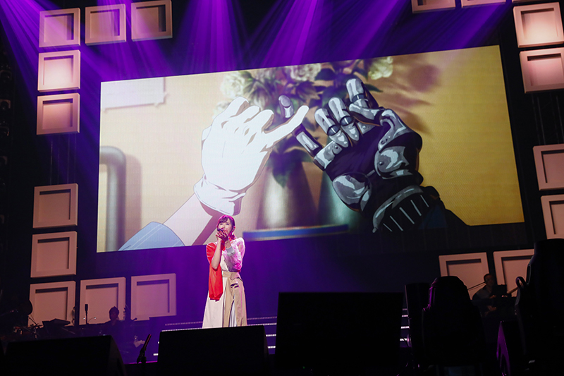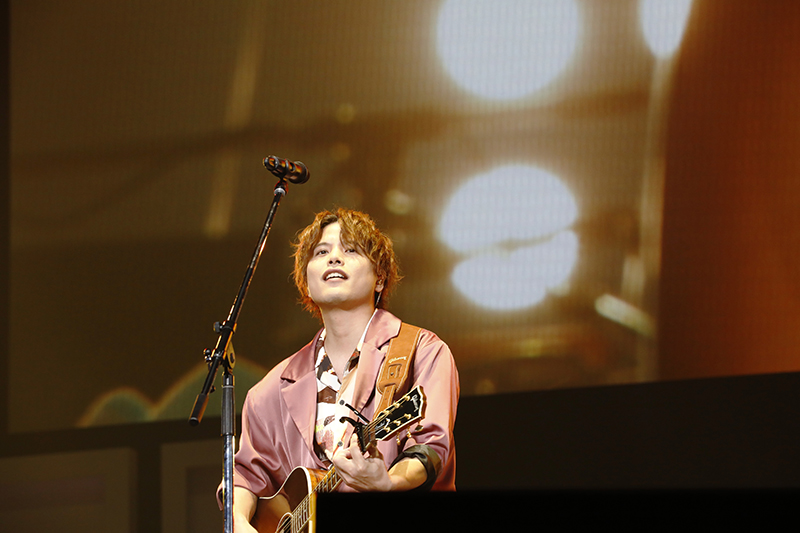 続いて仲村宗悟さんがギターを手に登場。『Here comes The SUN』を演奏とともに爽やかに歌いあげ、観客の心を掴みます。続けて『壊れた世界の秒針は』をアニメ映像を背にしながら熱唱。アーティストとしての実力の高さを見せつけました、