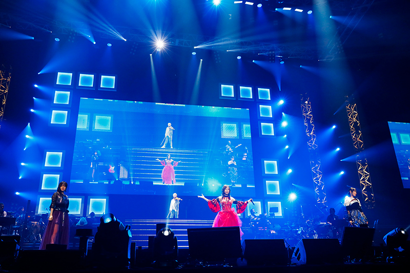 “fhána feat. スーパーちょろゴンず”による楽しいお祭り騒ぎが終わると一転して大人の雰囲気に。森口博子さんが登場し、“森口博子 feat. ヒロムーチョ”として『君を見つめて -The time I’m seeing you-』を歌い、会場の空気を一気に変えます。“森口博子 feat. 今井隼”による『一千万年銀河』では、美しいピアノとともにしっとりと歌い上げます。