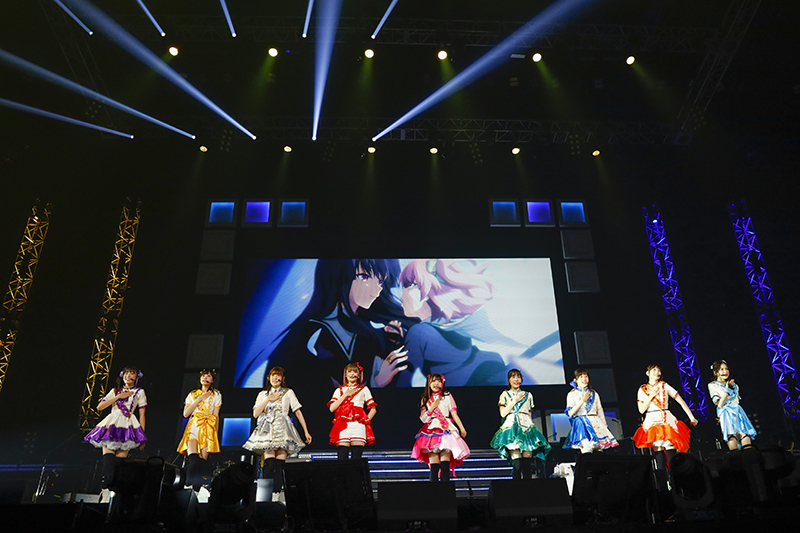 さらに小芝居を挟んで登場したのは“Mashumairesh!!”のメンバー。『キミのラプソディー』と『エールアンドレスポンス』をアニメ演出ともに元気いっぱいに歌います。