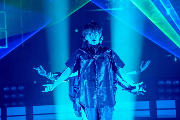 ブルーと黒にイエローの差し色が映えるブルゾン姿で再び姿を現すと、レーザーが飛び交う中1stアルバムからアッパーチューン「VIBES」を披露し、ここから怒涛のダンスゾーンへ突入。先日公開されたMUSIC VIDEOでのプロダンスチーム「KOSÉ 8ROCKS」との異色のコラボレーションが大きな話題を呼んでいたが、この日のステージでもそんなコラボが再び実現!