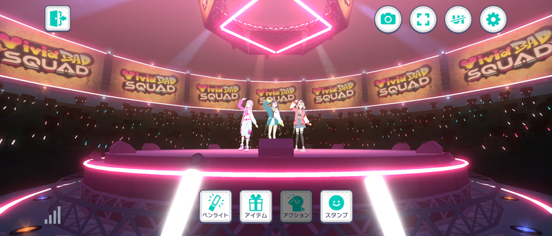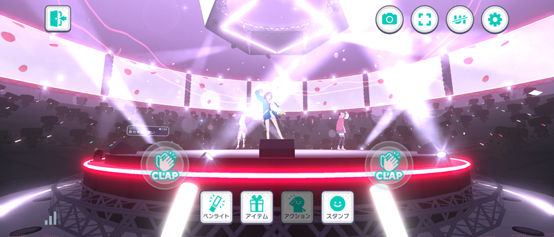 もちろん、従来のバーチャルライブと同じようにクラップやアイテムを使って会場を盛り上げる、アプリゲーム特有の楽しみ方も堪能でき、現実のライブとアプリのライブのよいところをミックスしたような新感覚のライブとなっていました。