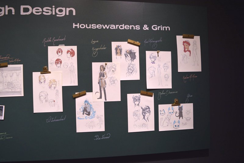 各寮のブースにある衣装のマネキンはポーズもこだわっているという展覧会における秘話や、貴重な初期設定画、グッズ、普段見ることができない衣装の裏地部分、その他展示会の文章にはファンが驚くようなものがあるなど、展覧会における細かい見どころにも言及しました。