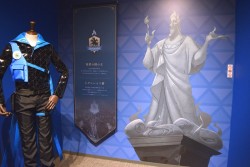 “ナイトレイブンカレッジツアー”を抜けると、鏡舎から各寮の展示を観覧できます。各寮のエリアでは、寮長の寮服と杖の再現展示だけでなく、インスパイア元のディズニー・アニメーション作品やディズニーヴィランズの紹介も行われています。さらに、生徒たちのセリフ付き映像演出も楽しめます。