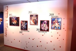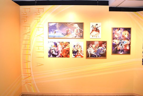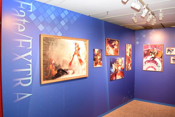 多数のイラストと共に『Fate/EXTRA』シリーズ、『Fate/EXTELLA』シリーズ、『Fate/Grand Order(FGO)』などの『Fate』作品を振り返る展示エリア。最新作『Fate/EXTRA Record』に関する展示も行われています。