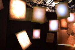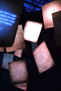 幻想的なプロローグを鑑賞した後、順路を進むと突如目に飛び込んで来るのは巨大なページ。幻想的に漂うページの中に『グラブル』序盤の物語の思い出が映し出されます。