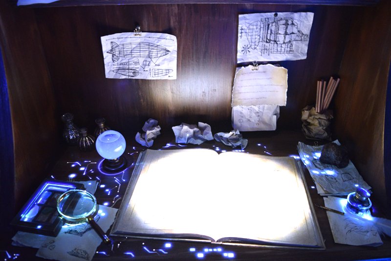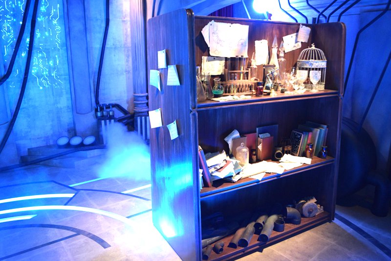 作戦室では黒板や机の上のノートにプロジェクトマッピングが施されており、作戦立案の様子がありありと目に浮かぶよう。小物の1つ1つまで精巧に作りこまれており、文字通り『グラブル』の世界に入り込んだようなリアリティです。