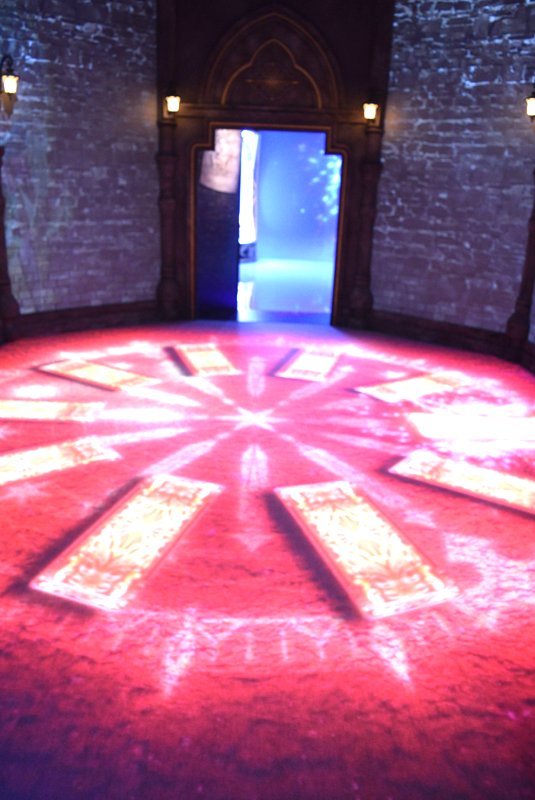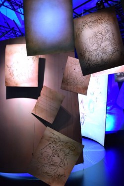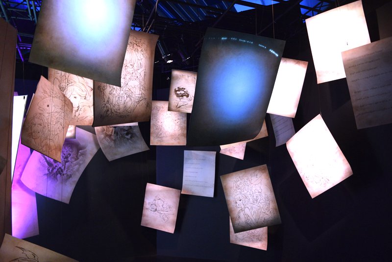 十賢者の展示は前後のスクリーンに映される映像に加えて、足元でタロットカードが動く演出も印象的、彼らがキーキャラクターとなる“アーカルムの転世”に通ずる、ある種の恐ろしさに通ずる神秘的な映像演出を楽しめます。
