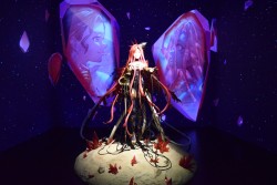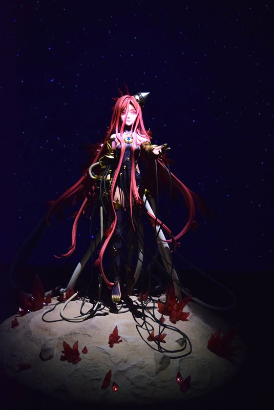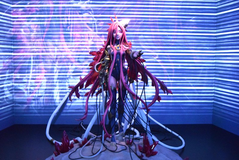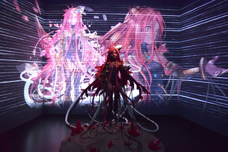 機神・セスラカの展示を抜けたエリアにはヤチマ&レイベリィの等身大フィギュアが登場。精巧な作り込みに加えて、背後で流れる映像演出にも注目。エリアの総決算にも感じられる内容となっています。
