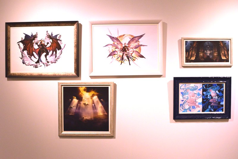 受付を抜けると、キービジュアルの巨大フォトスポットやバハムート像、原画資料展示、Vtuber ルリアによる会場内の注意事項など多数の展示が! 貴重な資料を確認できる他、Vtuber ルリアのアナウンスでは本イベントのプロローグにつながる内容となっているので要チェックです!