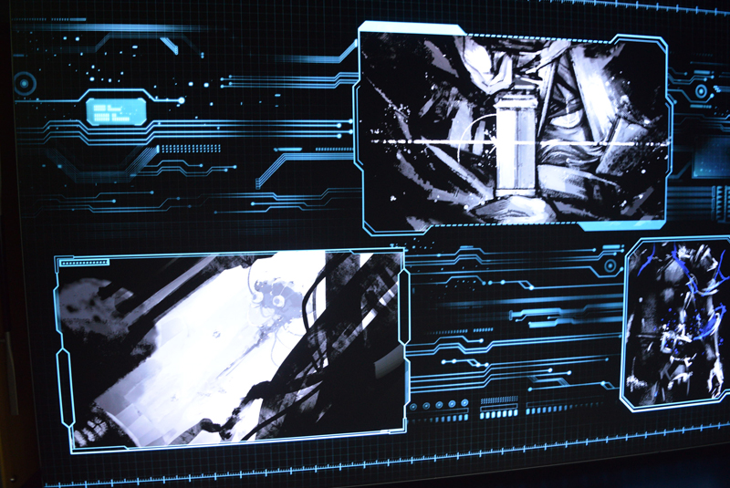 また、本展示では機神・アリアネンサと機神・グロウノスの激闘を応援したり、“組織”のデータベースを閲覧できるインタラクティブも存在する他、しばらく滞在していると思わぬアクシデントが発生することも……!? 直前の作戦室のリアリティとあわせてもはやアトラクションのような空間です。