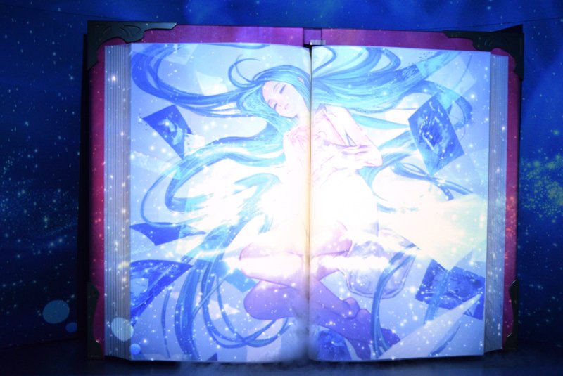 レセプションエリアを抜けると巨大なルリアノートが! 本イベントはルリアの夢を通して『グラブル』8年の冒険の軌道を体感するというシナリオとなっており、彼女が夢に見る思い出を通して『グラブル』の世界にいるような没入感を味わえます。