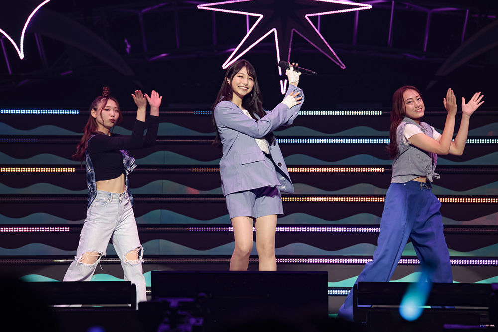 激しい曲調の2曲をエネルギッシュなダンスとともに歌い切る姿は流石ダンスヴォーカルグループというほかないパフォーマンスです。ハイテンポな楽曲の中、観客もクラップで場面も見られました。