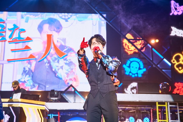 続くMCでは、浅沼が「明日は駒田航の33周年!」と呼びかけ、神尾の提案で、駒田が客席に息を吹きかけると、ライトをオーディエンスが倒し、明かりが消えていく演出を行い、会場の一体感は最高潮に。そしてラテンな「Scarface」、DAY1のゲストだったICE BAHN作詞の「HUNTING CHARM」で更にその熱気は高まっていく。