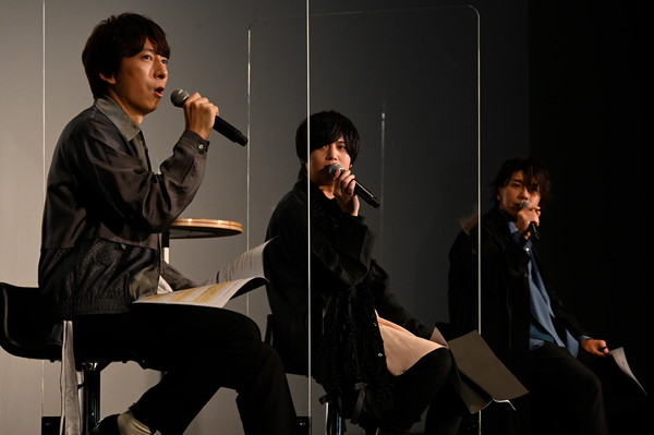 第14話〜第16話を鑑賞したばかりの観客の前にキャスト3人が登場してアフタートークがスタート。キャストたちが客席に感想を尋ねると、割れんばかりの大きな拍手が起こりました。