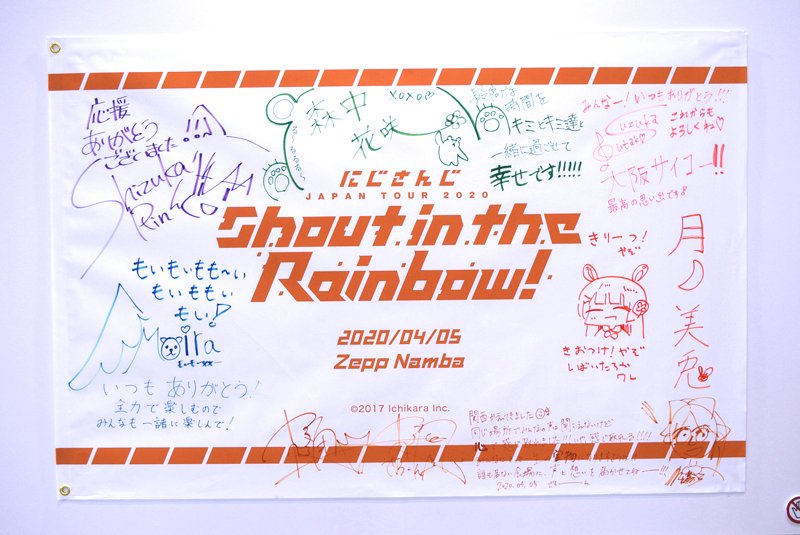 会場の外には、にじさんじ JAPAN TOUR 2020“Shout in the Rainbow!”で全国を渡ったツアーフラッグが展示。参加してきた方は当時に思いを馳せ、最近新しくにじさんじのファンとなった方は新鮮な気持ちで楽しめる展示内容です。