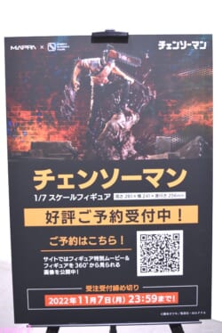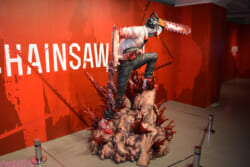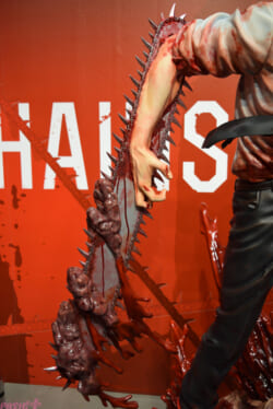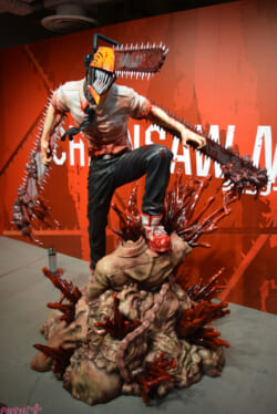 会場には“チェンソーマン”の等身大フィギュアを展示! 服装からチェンソーの刃一本一本まで精密に再現されており、観る者を圧倒させます。