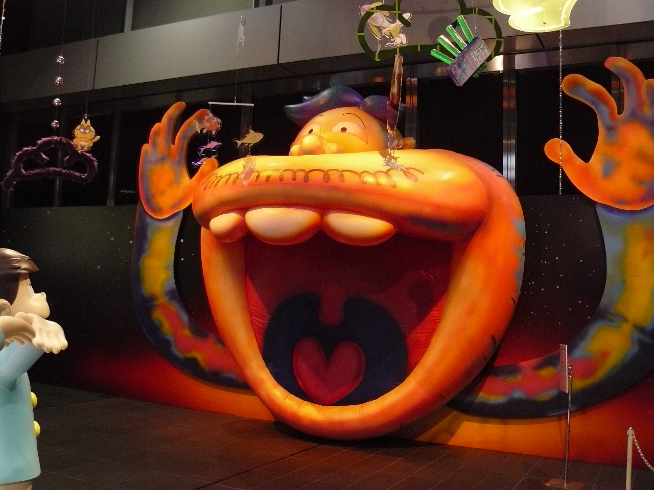 スペース右手には、床から壁に向かって描かれた不思議なイラストが。こちらは「トリックビジョン」となっており、6つ子&イヤミと一緒に、UFOに吸い込まれて行きそうな臨場感あふれる写真を撮ることができます。中央に描かれたちゃぶ台の上あたりに立って、「シェー!」のポーズを決めましょう☆