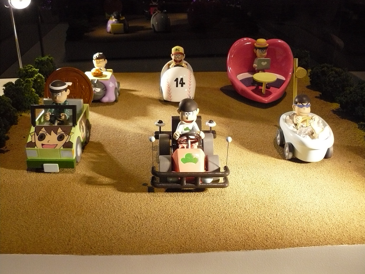 ▲「逆襲のイヤミ」の1シーンは、いま観ても笑えます。カーレースのジオラマは細かく造り込まれいました